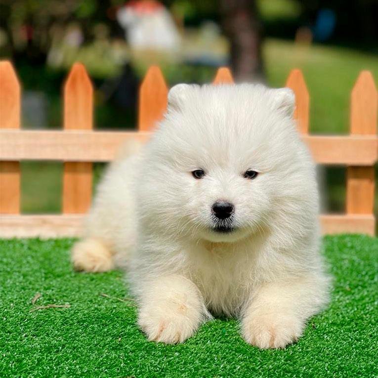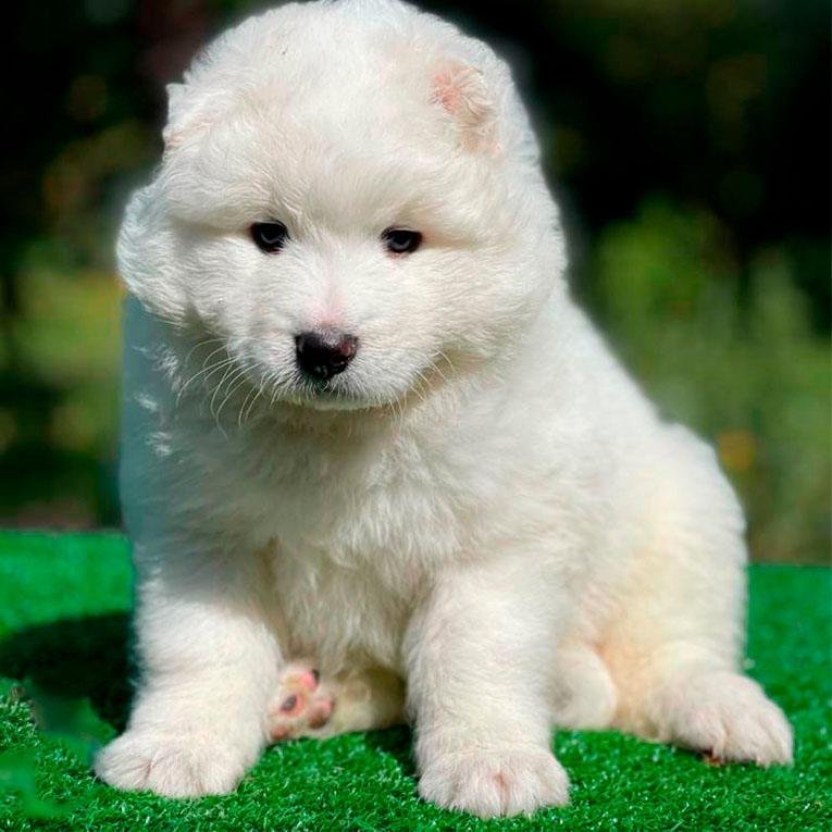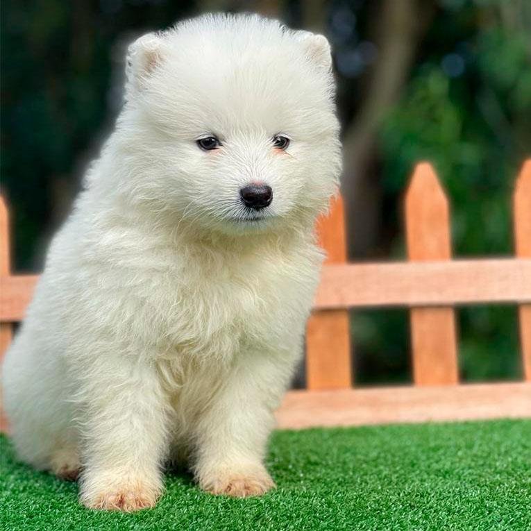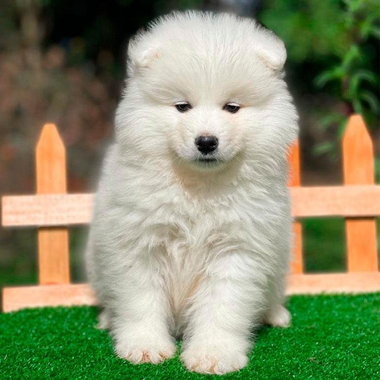 Fluffy es un pequeño Samoyedo con un pelaje tan esponjoso que parece un peluche viviente. Su naturaleza amigable y divertida lo convierte en el compañero ideal para niños y adultos por igual. ¡Es pura felicidad en cuatro patas!